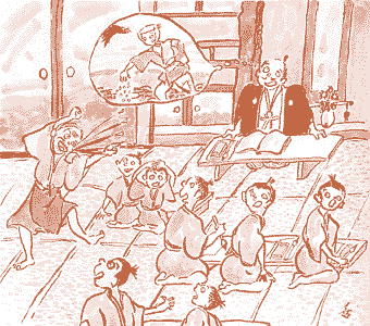 むかしむかしのこっちゃ。 学校に、おばんが来て、先生を呼んどらす(よんどらす)んや。 「先生、先生。先生おらんせんか。」 「おばんか。何や(なんや)えの。」 すると、いきなり、 「学校は、じかに種まきしくさったな。」 と、大声でどなるんやと。なんのことやら、わからんで、 「なんやって?もっぺん言うて。」 と、問い返した(といかえした)んやと。 |